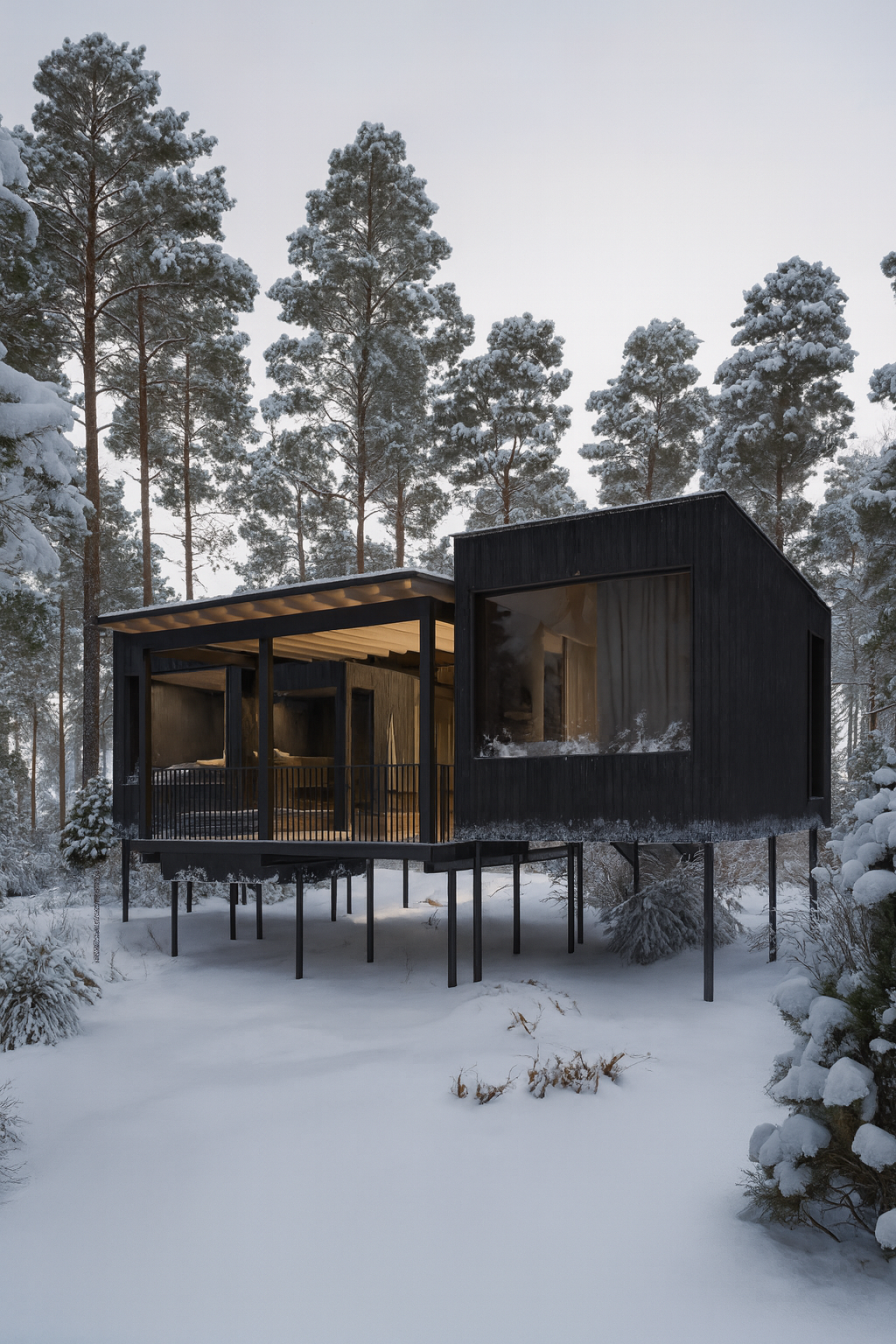 Inspired by Nordic calm where dark wood meets soft snow, and architecture becomes part of the forest. Designed for stillness, reflection, and the art of slowing down.