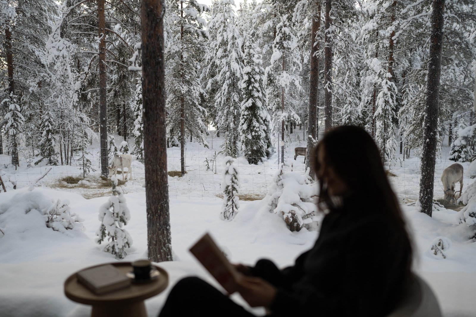 Reindeer are an iconic symbol of Lapland, and here you may have the rare chance to see them up close in their natural surroundings. Travel through the snowy forest in a snowmobile-pulled sleigh to visit a peaceful reindeer herd. Feed the animals, warm up by a crackling bonfire with a light lunch, and hear stories of traditional life in Lapland. This is a truly unique encounter. Reindeer are also part of our surroundings and can often be seen nearby, while this guided experience takes you deeper for an unforgettable visit.