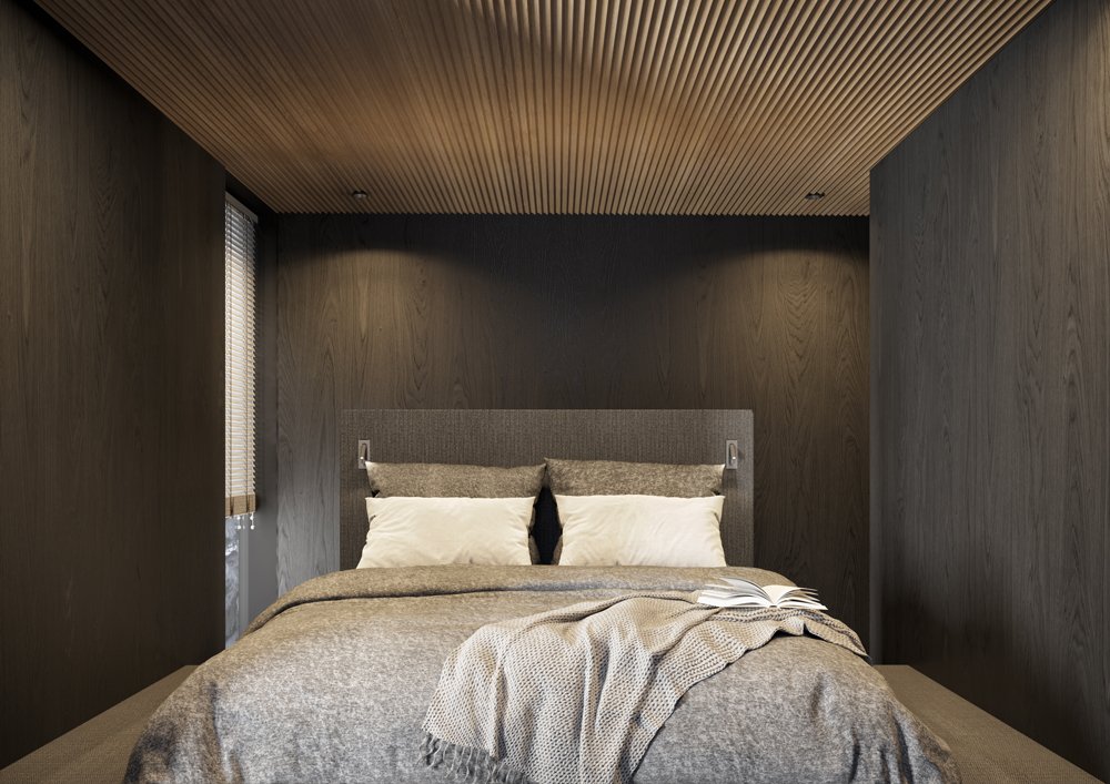 The Superior Villas offer a premium yet understated retreat, where tranquility and nature come together in perfect harmony. Each 50 m² villa features a private terrace with an outdoor hot tub, along with lounge and sleeping areas framed by panoramic glass walls overlooking the forest or river. Minimalist Scandinavian design, natural wood accents, and refined finishes create a warm, modern atmosphere, while spacious bathrooms with walk-in showers add a touch of everyday luxury.
