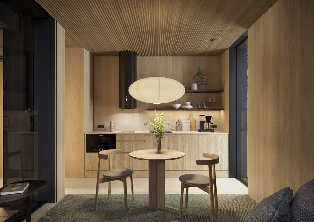 The Superior Villas offer a premium yet understated retreat, where tranquility and nature come together in perfect harmony. Each 50 m² villa features a private terrace with an outdoor jacuzzi, along with lounge and sleeping areas framed by panoramic glass walls overlooking the forest or river. Minimalist Scandinavian design, natural wood accents, and refined finishes create a warm, modern atmosphere, while spacious bathrooms with walk-in showers add a touch of everyday luxury.