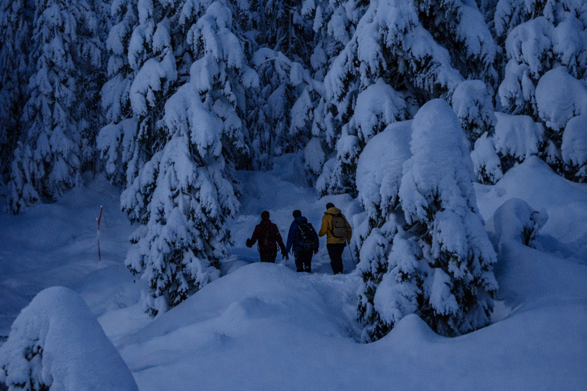 Includes: Personal local guide, instruction, headlamps, sliding snowshoes/skis, poles, photos, and a hot drink.