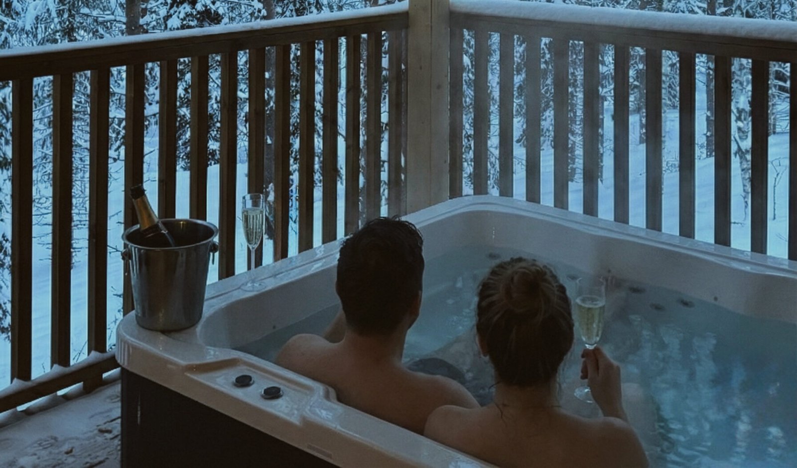 Détendez-vous dans votre bain à remous privé en admirant la nature et les cieux nordiques