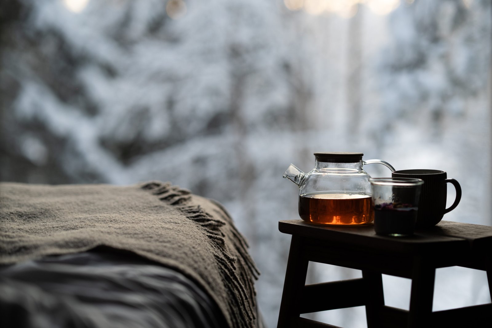 Détendez-vous dans notre salon de thé et bibliothèque – feu doux, thé chaud et nature paisible