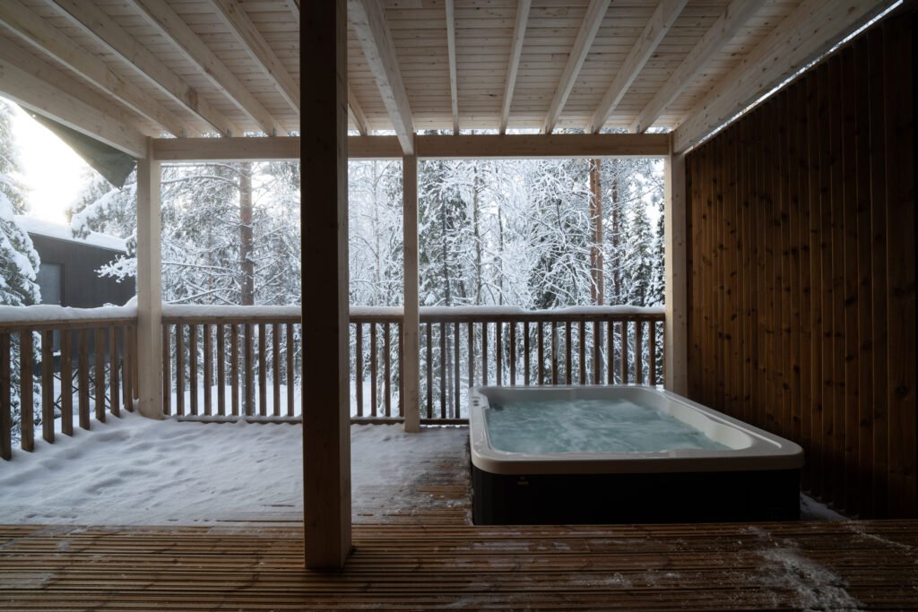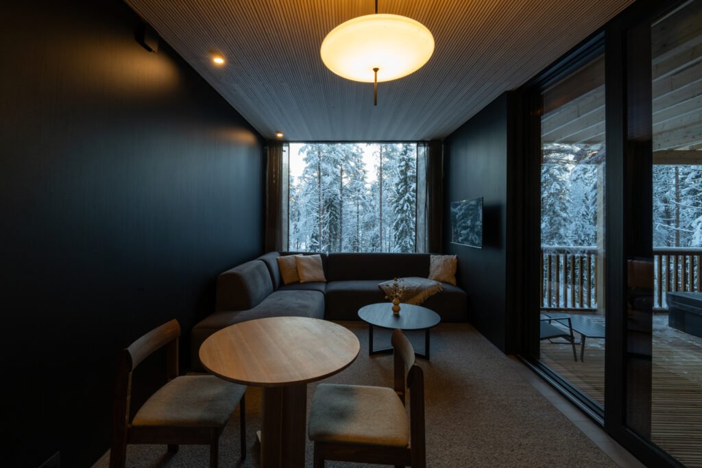 The Deluxe Villas offer an intimate and secluded escape where modern comfort blends seamlessly with the untouched beauty of Lapland. Each 57 m² villa features a private panoramic sauna, expansive terrace, and outdoor hot tub, creating a tranquil space to unwind while surrounded by serene river views and ancient forests. Floor-to-ceiling windows bring nature closer, while refined Nordic design and natural materials infuse every detail with warmth and harmony.